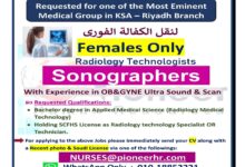 مطلوب اخصائيات تمريض للعمل بالرياض