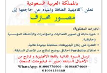 مطلوب مصور محترف للعمل بالسعودية
