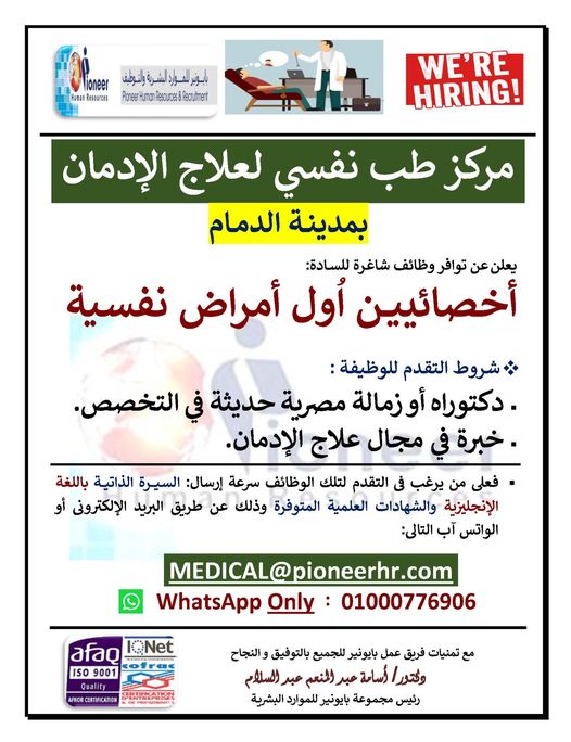 مطلوب لمركز طب نفسى لعلاج الادمان