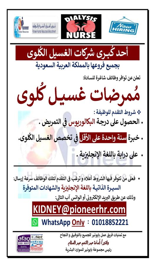 مطلوب ممرضات غسيل كلوى