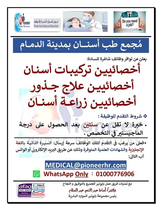 مطلوب لمجمع طب أسنان بمدينة الدمام