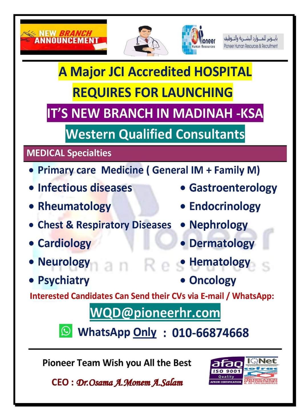 مطلوب وظائف أطباء تخصصات مختلفه