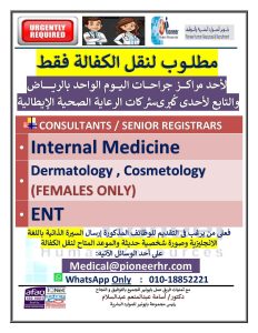 مطلوب اطباء لنقل الكفالة فقط بالسعودية